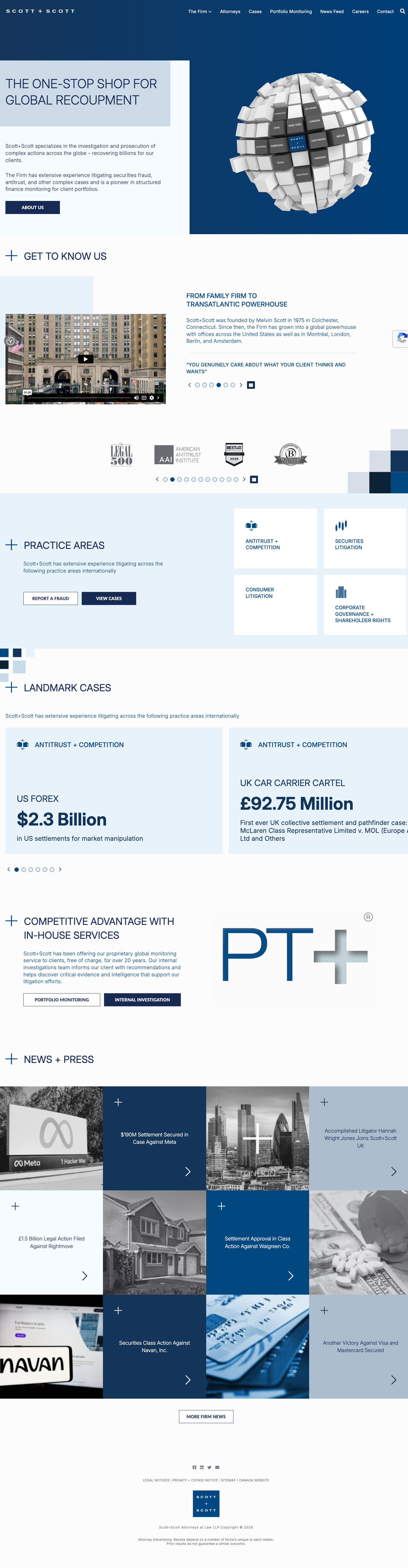 For Scott+Scott, an international law firm, I was responsible for the technical stewardship of their core web platform. The objective was to modernize a robust WordPress ecosystem by improving user experience through custom component development and drastically improving page performance to support their digital strategy.